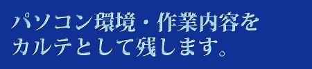 いつ買ったパソコンを何台使っているか、インターネットの状況、プリンタ・ソフトは何を使っているかなど、あなたのパソコンの記録を残します。